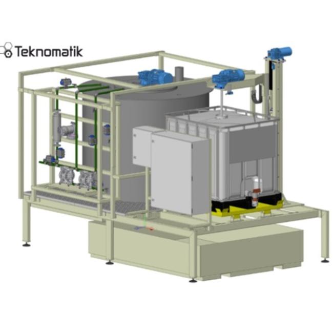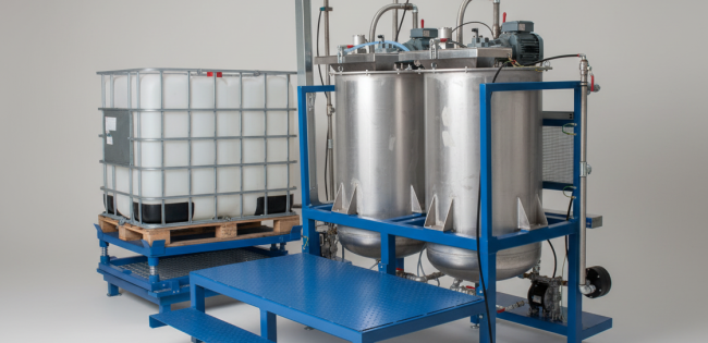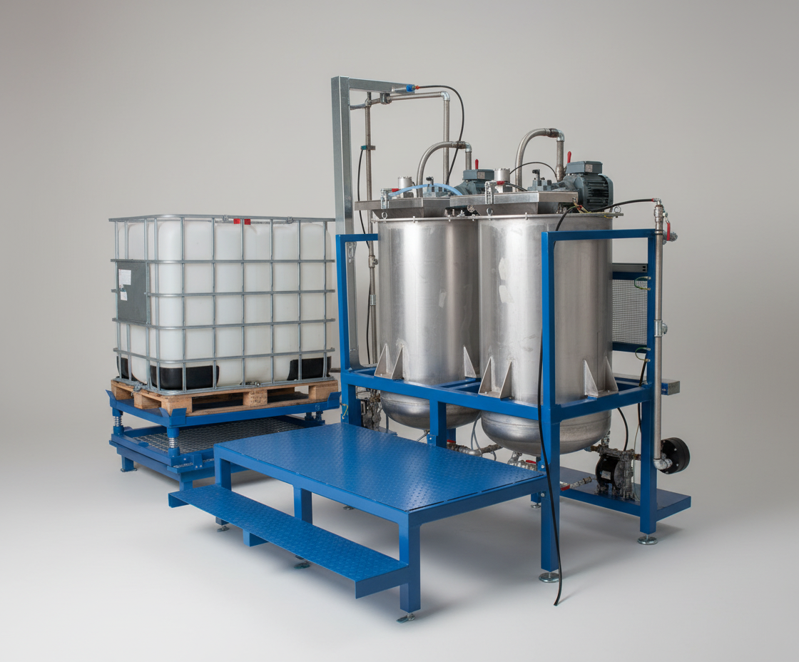 - Behälter: Lagerbehälter (1000-2000 l) sowie Vorbereitungsbehälter (300-500 l) mit mechanischem Rührwerk und Umwälzmischung.