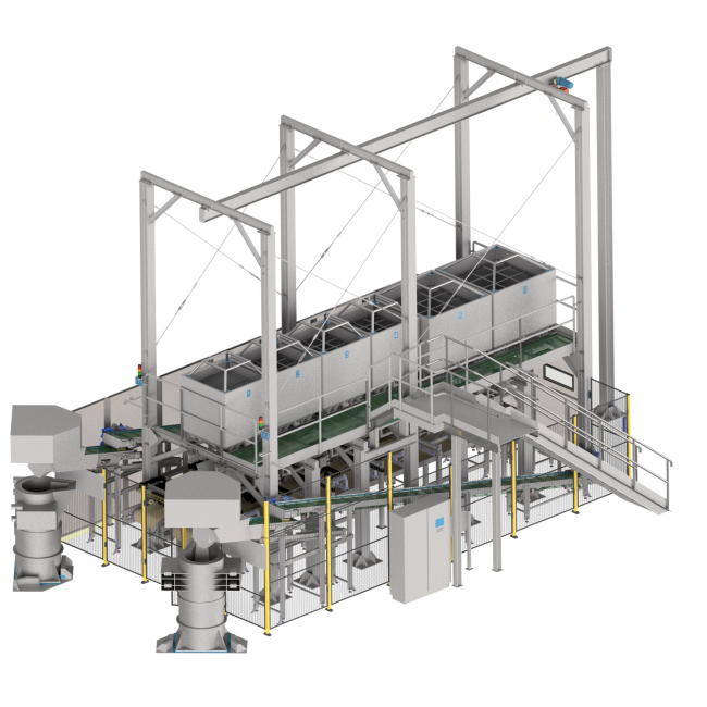 Ist beim Kunden keine Krananlage vorhanden, kann das System mit einer eigenen Big-Bag-Beschickung ausgestattet werden. Darüber hinaus ist auch eine direkte Dosierung aus Big-Bags problemlos möglich.