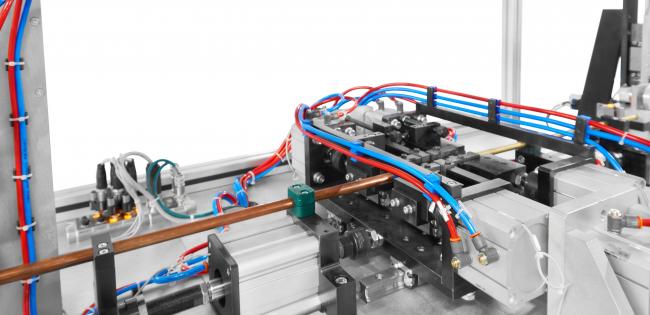 Die Maschine dient zur Herstellung von einfachen oder doppelten Verengungen an PA-Rohren. Die Maschine arbeitet nach einem festgelegten automatischen Zyklus: