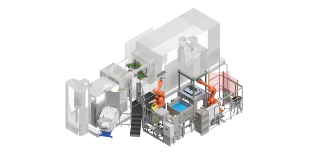 Eine robotergesteuerte Anlage für den Aluminiumguss.