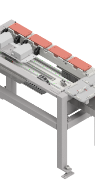 Die Markierungsstation besteht aus zwei Wiegesystemen und zwei Mikroschlagmarkierern.