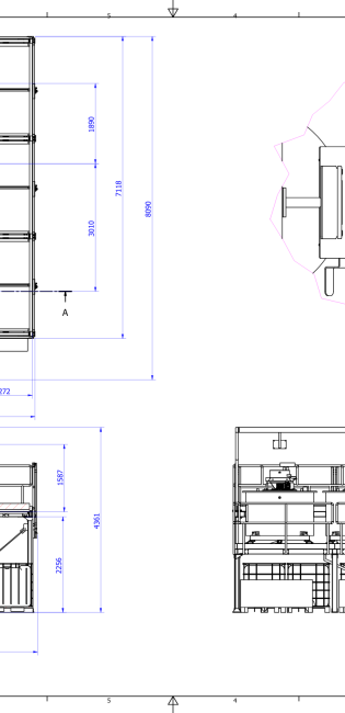Die Konstruktion besteht aus Stahlprofilen mit einer oberen Plattform zur Bedienung der Behälter und einer unteren Plattform, die einen ungehinderten Wartungszugang zu jedem Bereich der Maschine ermöglicht. Die Zugangsleitern und Plattformen sind so konzipiert, dass sie den Bedienern maximalen Arbeitskomfort und Bewegungsfreiheit bieten.