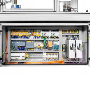 Das Modul, das auf zwei Servopressen C1152501 von Festo basiert, ermöglicht es, den Starlock-Spannring präzise auf den Werkstückdorn zu stanzen. Die Geräte haben einen Hub von 100 mm und sind in der Lage, eine Kraft von bis zu 17 kN zu erzeugen. Gleichzeitig mit dem Pressenvorschub wird die Hubkraft der Armlehne durch einen Dehnungsmessstreifen-Sensor gemessen. Wenn der erwartete Wert erreicht ist, wird der Betrieb der Pressen sofort gestoppt. Diese Lösung ermöglicht ein individuelles Herangehen an jedes Werkstück und garantiert beste Ergebnisse.